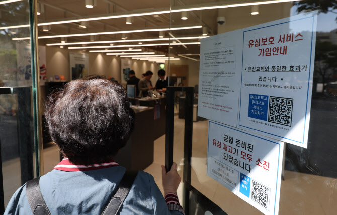 서울 시내 한 SK텔레콤 인증 대리점에 유심 재고 소진과 유심보호 서비스 가입 안내문이 동시에 붙어있다.(사진=연합뉴스) |