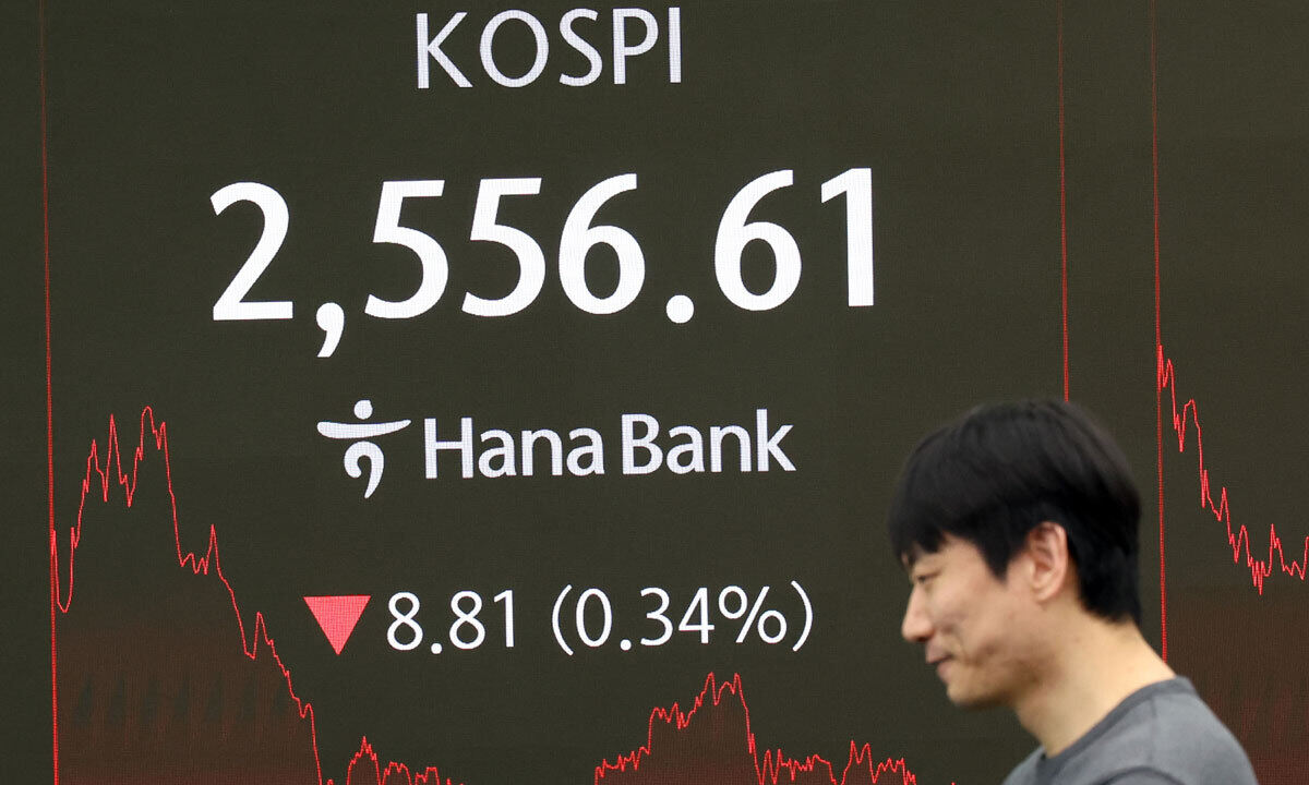 지난 4월 30일 오후 서울 중구 하나은행 본점 딜링룸 전광판에 증시가 표시되고 있다. 이날 코스피 지수는 전 거래일 대비 8.81p(0.34%) 내린 2,556.61, 코스닥 지수는 9.22p(1.27%) 내린 717.24로 마감했다. 뉴스1 |
