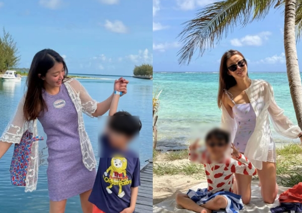 공개된 사진 속 이시영은 아들과 함께 해외여행을 떠난 모습이다. 이들 모자는 청량한 색의 바다 앞에서 여유로운 시간을 보내고 있으며 이시영은 아들과의 모래놀이로 동심에 푹 빠진 모습이다.