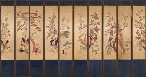 사계절을 상징하는 꽃과 새가 수 놓인 10폭 병풍도 주목할 만한 유물이다.