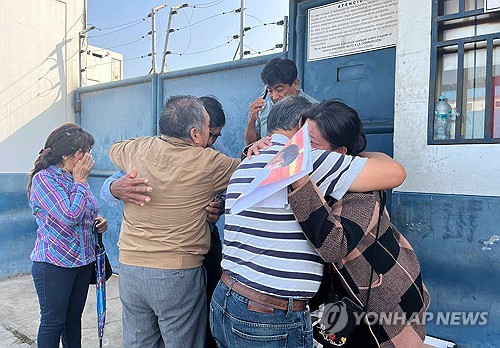슬픔에 잠긴 페루 금광 보안요원 유족 |
