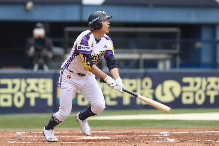 올해 벌써 2개다. 심지어 모두 잠실이다. 시즌 1호 홈런은 지난 19일 KIA전서 나왔다. 1회말 아담 올러의 시속 150㎞ 속구를 타격해 담장을 넘겼다. 많은 홈런을 날리는 선수가 아님에도 올해 모든 홈런을 외야 거리가 먼 잠실에서 적었다. 이 감독이 놀란 이유다.