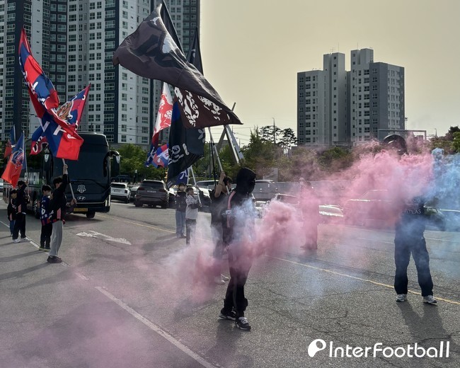 마침내 선수단이 도착했고 김은중 감독을 시작으로 수원FC 선수단이 버스에서 내렸다. 수원FC 팬들은 오늘 경기 승리와 최하위 탈출을 위해 선수단에 응원을 보냈다. 선수들은 반갑게 팬들의 인사를 받아주었고 사인 요청에도 흔쾌히 응했다.