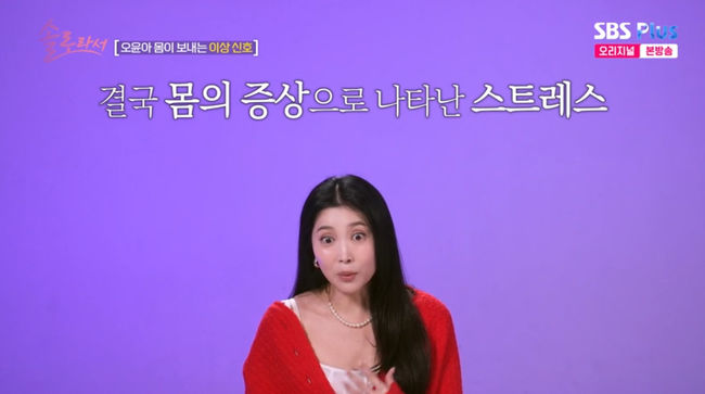 6일에 방송된 SBS Plus, E채널 예능 '솔로라서'에서는 오윤아가 스트레스 지수 검사를 받았다.