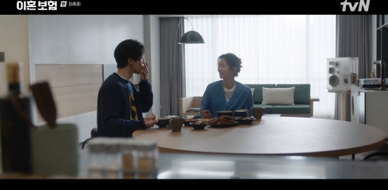 6일 방송된 tvN 월화드라마 '이혼보험' 12회(최종회)에서는 노기준(이동욱 분)과 강한들(이주빈)이 아침 인사를 나누는 모습이 그려졌다.