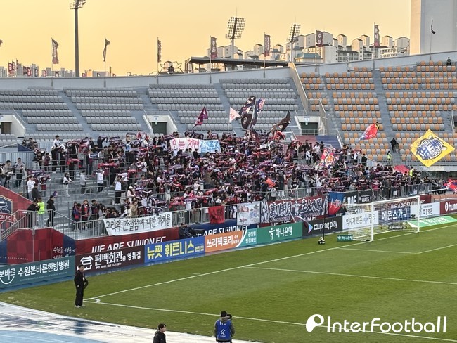 [인터풋볼=박윤서 기자(수원)] 수원FC 팬들은 승리를 바라는 마음으로 간절하게 응원했다. 수원 선수들도 이를 알고 있었다.