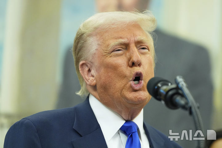 [워싱턴=AP/뉴시스]도널드 트럼프 미국 대통령이 5일(현지 시간) 백악관 집무실에서 2027 미국프로픗볼(NFL) 드래프트 행사가 워싱턴DC 내셔널몰에서 진행될 예정이라고 발표하고 있다. 2025.05.06. |