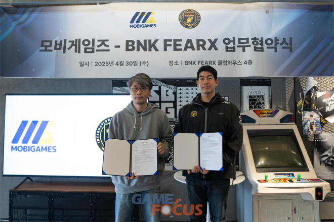 이스포츠팀 BNK 피어엑스(FEARX)의 소속사 SBXG(임정현 대표)는 종합 미디어 콘텐츠 그룹 모비데이즈의 게임 전문 자회사 모비게임즈(대표 유범령)와 양사 간 IP활용을 통한 공동 마케팅 실현을 위해 전략적 업무 협약을 체결하였다고 7일 밝혔다. 협약식 행사는 지난 4월 30일 BNK FEARX 종각 클럽하우스에서 SBXG 임정현 대표, 모비게임즈 모회사 모비데이즈 김인범 CIO를 포함한 관계자들이 모여 진행되었다.