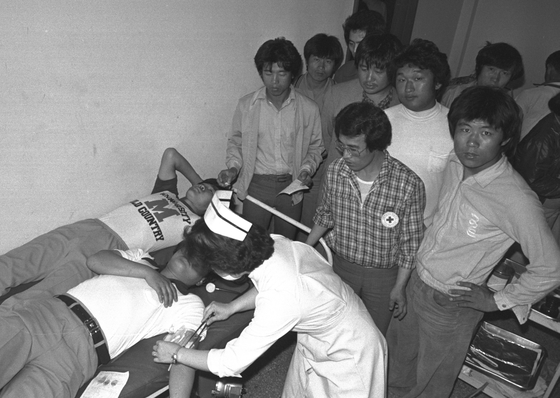 1980년 5월 21일 5·18 당시 계엄군의 집단 발포 직후 “환자를 수술할 혈액이 부족하다”는 소식에 시민과 학생 등이 광주 적십자병원에서 헌혈을 하기 위해 대기하고 있다. [중앙포토] |