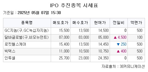 기업공개(IPO) 상장 예비심사 청구종목이자 이산화탄소 포집∙활용(CUU) 전문기업 빅텍스가 전장보다 3.86% 오른 1만750원으로 마감해 오름세를 이어갔고 상장 예비심사 승인 종목이자 프리미엄 비건 뷰티 브랜드 달바 운영업체 달바글로벌(구 비모뉴먼트, 5.59%), 신용카드 할부금융사 현대카드(1.96%)도 상승했다.