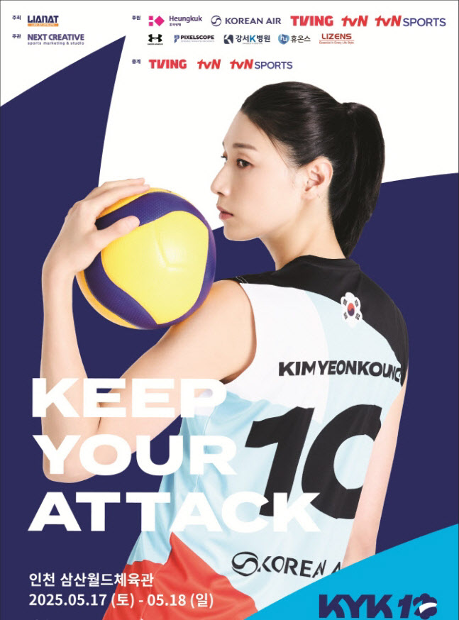 김연경의 소속사 ㈜라이언앳이 주최하고 김연경이 세계적인 여자배구 올스타를 초청하는 ‘KYK 인비테이셔널 2025’가 오는 17일과 18일 이틀에 걸쳐 인천 삼산월드체육관에서 열린다. 경기 시간은 모두 오후 4시다.