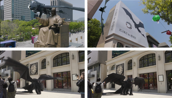 곧이어 투슬리스의 거대한 날갯짓이 바람을 일으키면서 영화 '드래곤 길들이기'의 새로운 이미지가 드러나 작품에 대한 관심과 흥미를 고조시킨다. 마지막으로 광화문 광장 위에 무사히 착륙한 투슬리스가 한국의 예비 관객들과 직접 마주하는 모습까지 생생하게 그려지며 영상에 특별한 매력을 더한다.