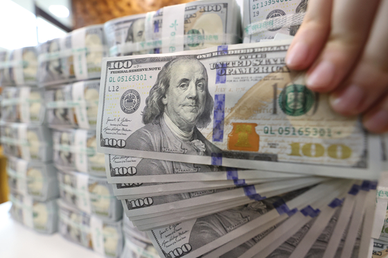 지난달 3일 서울 중구 하나은행 위변조 대응센터에서 직원이 미국 달러를 정리하는 모습. 연합뉴스 |