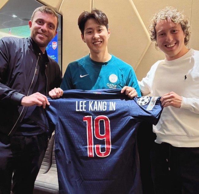 이강인 에이전트 하비에르 가리도는 8일(이하 한국시간) 파브리시오 로마노, 마테오 모레토와 함께 이강인이 PSG 유니폼을 들고 있는 사진을 올렸다. 이강인 PSG 유니폼과 함께 등번호 19번이 적혀 있었다.