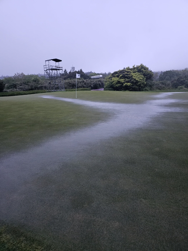 9일 제주 서귀포 사이프러스 골프&리조트 북서코스에 상당한 비가 내리고 있다. /KPGA |