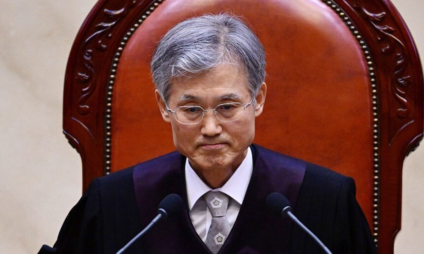 조희대 대법원장이 지난 1일 서울 서초구 대법원 대법정에서 더불어민주당 이재명 대선후보의 공직선거법 위반 사건 상고심 선고를 준비하며 입술을 다물고 있다. 뉴시스 |