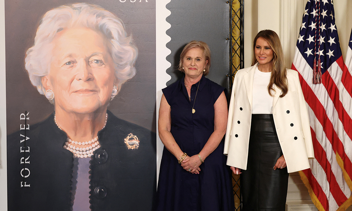 도널드 트럼프 현 대통령의 부인 멜라니아 트럼프 여사는 공개 석상에 모습을 잘 드러내지 않아 ‘은둔의 영부인’으로 불린다. 그런 그가 지난 8일 모처럼 백악관에서 행사를 주최했다. 1925년 태어난 바버라 여사의 탄생 100주년을 맞아 기념 우표가 발행되는 것을 축하하는 자리였다. 멜라니아 여사는 바버라 여사가 미국인의 문해력 증진과 여성의 사회 진출 활성화에 기여한 공로를 높이 평가했다. 그러면서 “이 기념 우표는 영부인으로서 바바라 부시 여사의 공헌과 우리나라에 대한 그의 지속적인 영향을 기린다”고 의미를 부여했다. 이날 ‘아들 부시’ 부부는 함께하지 않았으나 ‘아버지 부시’의 딸 도로 부시가 가문을 대표해 백악관 행사에 참석했다.