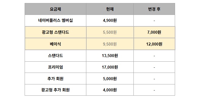 스탠다드(1만3500원)와 프리미엄(1만7000원) 가격에는 변동이 없다. 넷플릭스는 지난 2021년 한국에서 스탠다드와 프리미엄 가격을 한 차례 인상한 바 있다.넷플릭스 광고형 스탠다드를 4900원에 이용할 수 있는 네이버플러스 멤버십 가격은 그대로 유지된다.