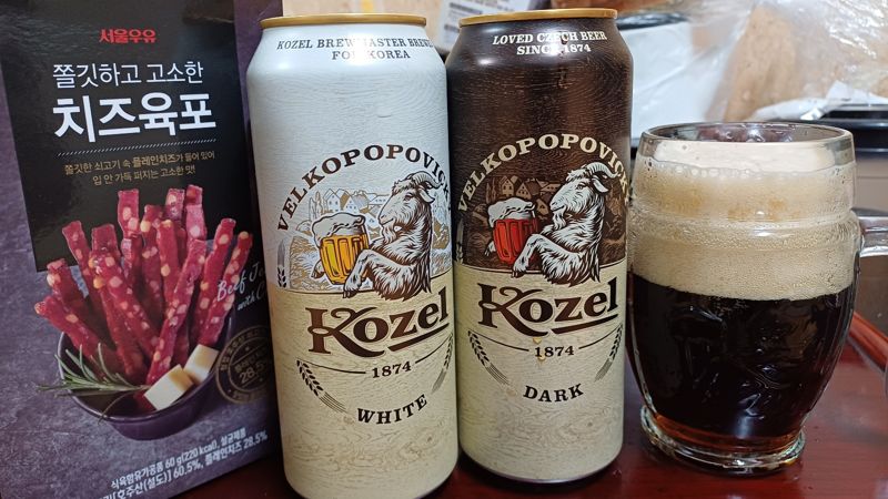 약한영웅과 함께 체코 대표 흑맥주 '코젤 다크'와 '코젤 화이트'를 마셨다. 코젤 다크는 과거 생맥주 펍에서 마셔본 적이 있다. 진한 커피색의 어두운 색감에 잔의 테두리에 시나몬 가루를 뿌려두어 그 어떤 맥주와도 달랐던 개성있는 맥주로 기억에 남아있다. 흑맥주 특유의 커피향과 쌉쌀한 맛이 강한 인상으로 남아있다. 코젤 다크를 마시며 본 약한영웅은 학교 폭력 등을 다루는 조금은 답답한 영화였는데 코젤 흑맥주의 쌉쌀한 맛과 잘 어울렸다. 코젤은 체코어로 '숫염소'를 뜻하는데 맥주 캔에 있는 숫염소 역시 영화의 어두운 분위기와 잘 어울렸다. 안주로는 집에 있던 서울우유 치즈육포를 곁들였다. 다음번에는 바나나 아이스크림과 코젤 다크를 함께 먹어도 잘 어울릴 것 같다고 생각했다.