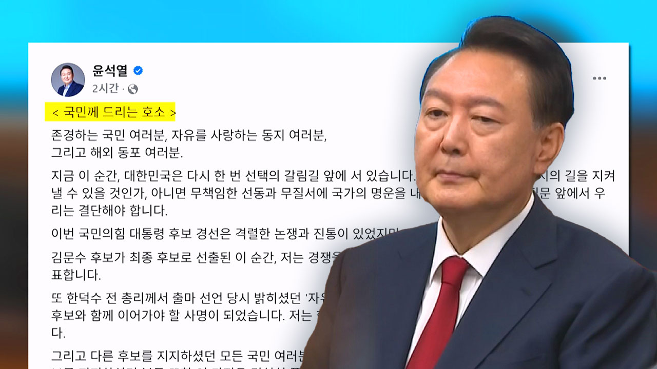 김문수 후보가 확정되자 자칭 국민의힘 1호 당원을 주장해 왔던 윤석열 전 대통령이 또 메시지를 냈습니다. 김 후보에 대한 적극적인 지지를 호소하고 나선 건데, 국민의힘 안에선 선거에 도움이 안 되니 출당시켜야 한다는 목소리까지 나왔습니다.
