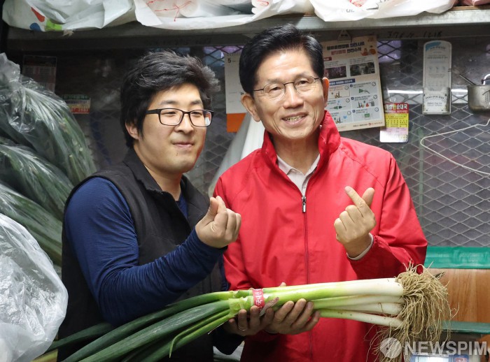 [서울=뉴스핌] 이호형 기자 = 김문수 국민의힘 대선 후보가 제21대 대통령선거 공식 선거운동 첫날인 12일 오전, 서울 송파구 가락시장을 찾아 상인과 기념촬영을 하고 있다. 2025.05.12 leemario@newspim.com |