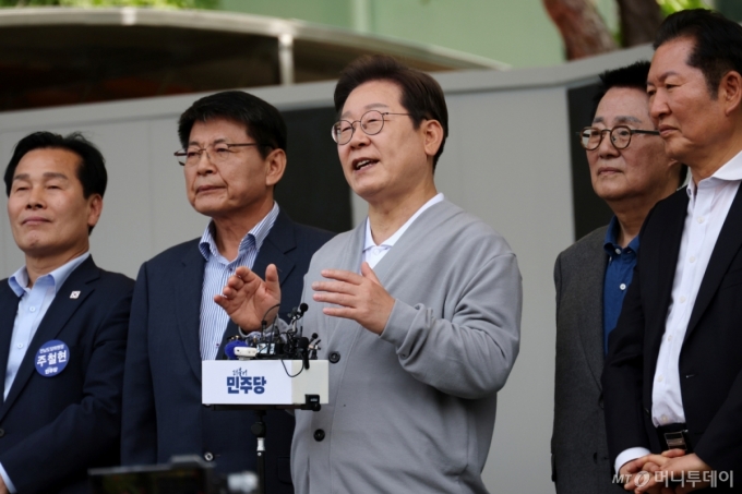[해남=뉴시스] 조성우 기자 = 민심을 청취하는 '경청 투어'에 나선 이재명 더불어민주당 대선후보가 11일 전남 해남군 해남읍 인근 광장에서 연설을 하고 있다. 2025.05.11. xconfind@newsis.com /사진=조성우 |