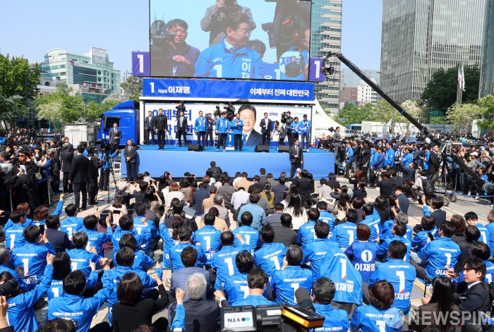 [서울=뉴스핌] 정일구 기자 = 이재명 더불어민주당 대선 후보가 6·3 대통령선거 공식 선거운동 첫날인 12일 서울 광화문 청계광장에서 열린 출정식 및 첫 유세에서 운동복과 운동화를 전달받고 있다. 2025.05.12 mironj19@newspim.com |