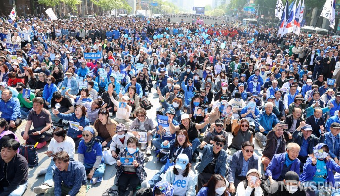 [서울=뉴스핌] 정일구 기자 = 대통령 선거운동 첫날인 12일 오전 서울 종로구 청계광장에 많은 더불어민주당원과 지지자들이 운집했다. 2025.05.12 mironj19@newspim.com