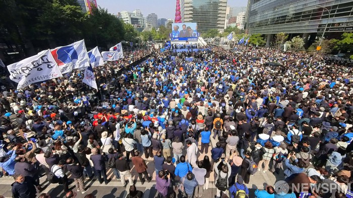 [서울=뉴스핌] 정일구 기자 = 대통령 선거운동 첫날인 12일 서울 종로구 청계광장에 많은 더불어민주당원과 지지자들이 운집한 가운데 이재명 후보가 인사 하고있다. 2025.05.12 mironj19@newspim.com