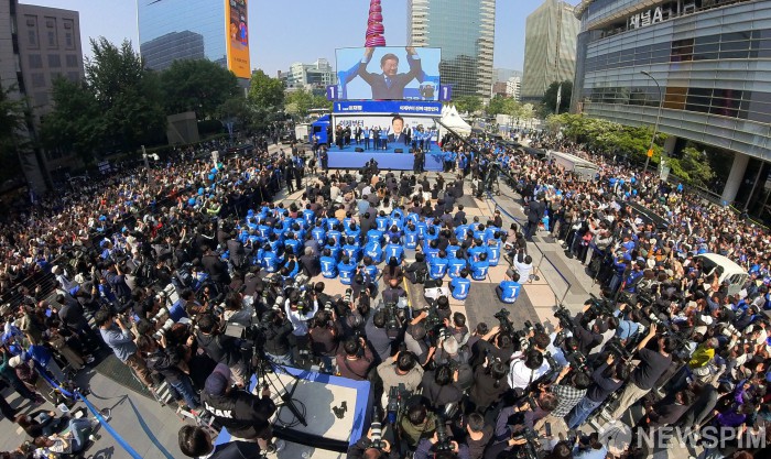 [서울=뉴스핌] 정일구 기자 = 대통령 선거운동 첫날인 12일 서울 종로구 청계광장에 많은 더불어민주당원과 지지자들이 운집한 가운데 이재명 후보가 인사 하고있다. 2025.05.12 mironj19@newspim.com