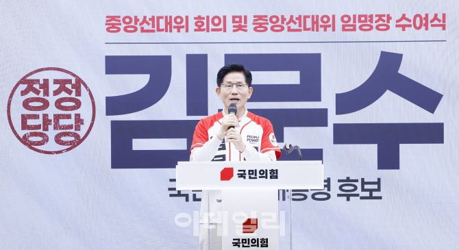 [이데일리 이영훈 기자] 김문수 국민의힘 대선후보가 12일 서울 여의도 국민의힘 중앙당사에서 열린 중앙선거대책위원회 임명장 수여식에서 인사말을 하고 있다.