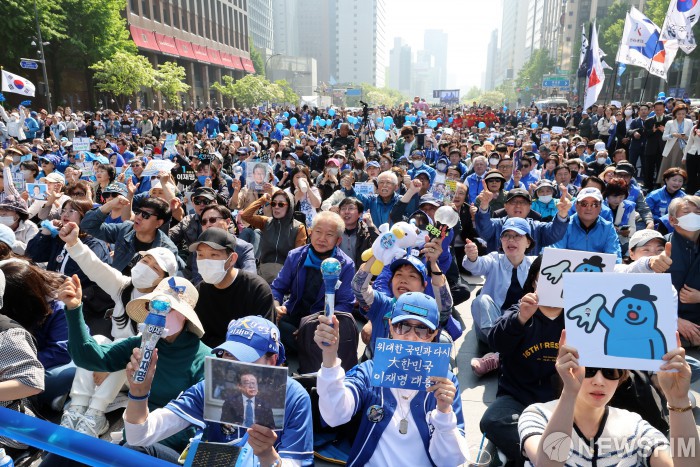 [서울=뉴스핌] 정일구 기자 = 이재명 더불어민주당 대선 후보가 12일 오전 서울 광화문 청계광장에서 첫번째 선거 유세를 시작한 가운데 지지자들이 환호하고 있다. 2025.05.12 / 2025.05.12 mironj19@newspim.com