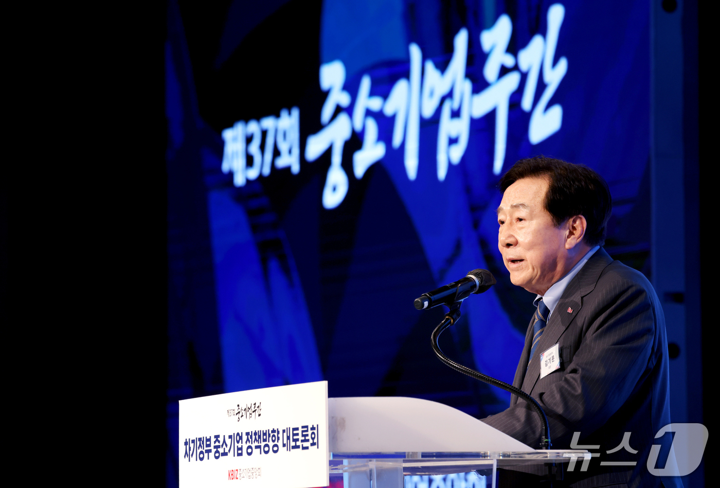 김기문 중기중앙회장은 정치권을 향해 "중소기업인의 75.7%가 대통령의 가장 중요한 덕목으로 '경제성장 견인'을 꼽았다"며 "기업인 대다수는 보수도 진보도 아니다. 국민에게 희망을 주고 중소기업을 위해 필요한 정책을 만드는 분을 응원한다"고 강조했다.