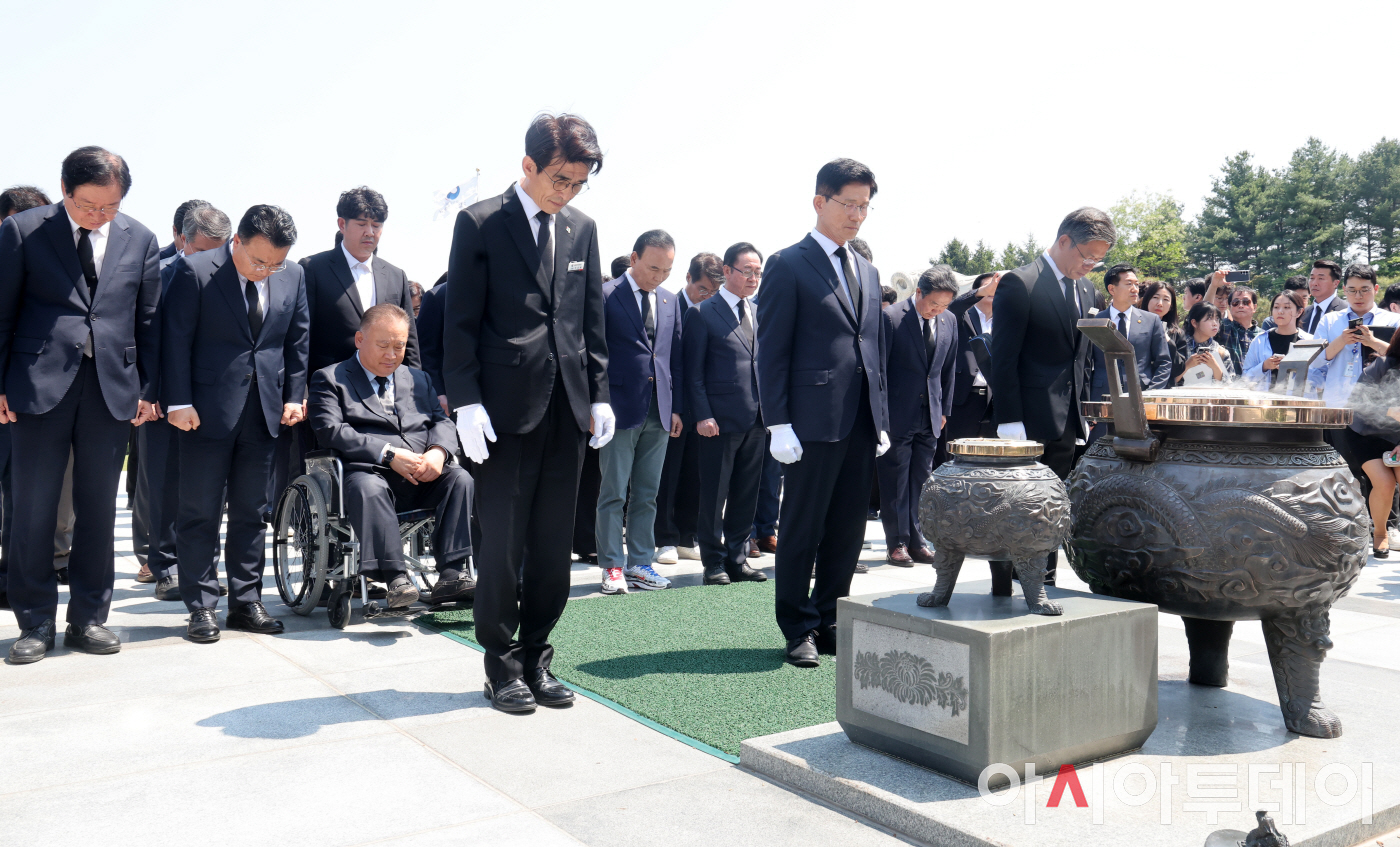 아시아투데이 송의주 기자 = 김문수 국민의힘 대선 후보가 12일 대전 유성구 국립대전현충원을 찾아 현충탑에서 참배하고 있다.