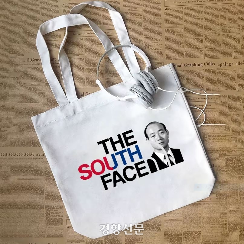 이 가방은 미국 아웃도어 브랜드 노스페이스를 패러디한 ‘사우스페이스’라는 로고와 함께 전씨의 얼굴이 전면에 인쇄돼 있다. 해당 사진은 전씨가 5·18민주화운동을 유혈진압하고 1980년 9월 대통령이 취임했던 시기의 모습이다.
