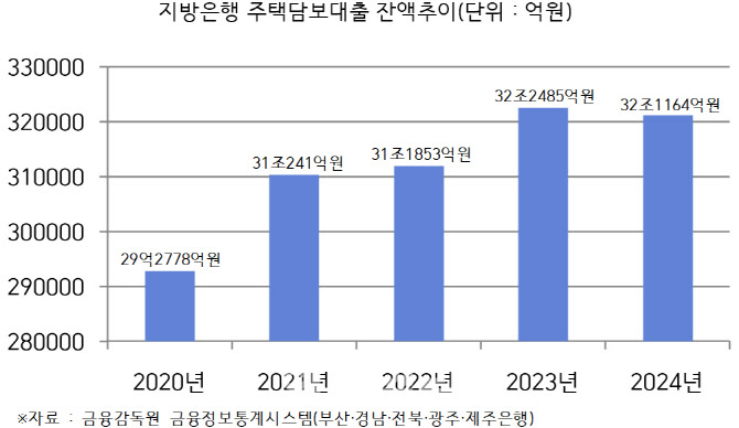 당국은 규제 완화를 통해 지방은행의 영업 여건을 개선하겠다고 했지만 금융권에서는 “규제를 완화해도 수요가 없다”는 반응이 지배적이다. 실제 지방은행의 핵심 수익원이던 주택담보대출(주담대)은 이미 하향 곡선을 그리고 있다.