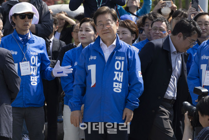 [이데일리 이영훈 기자] 이재명 더불어민주당 대선 후보가 6·3 대통령선거 공식 선거운동 첫날인 12일 오후 경기 화성시 동탄 센트럴파크 음악분수중앙광장에서 열린 'K-반도체' 동탄 집중유세에 참석하고 있다.