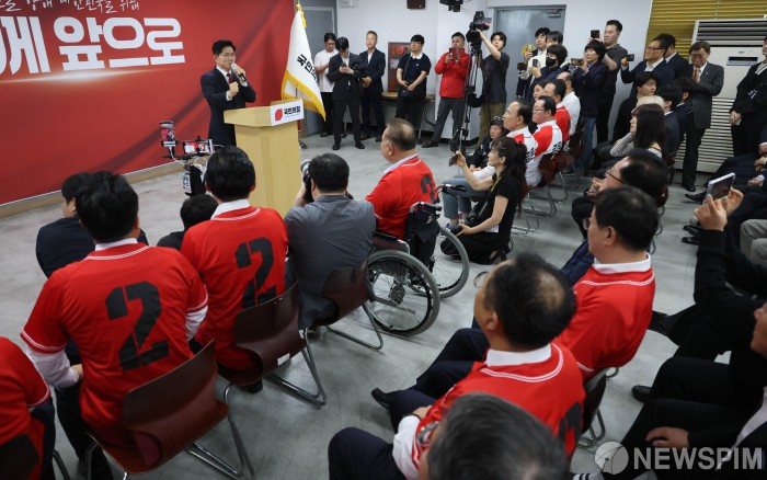 [대전=뉴스핌] 최지환 기자 = 김문수 국민의힘 대선 후보가 12일 대전 동구 대전시당사에서 열린 충청권 선거대책위원회 출정식에서 발언하고 있다. 2025.05.12 choipix16@newspim.com