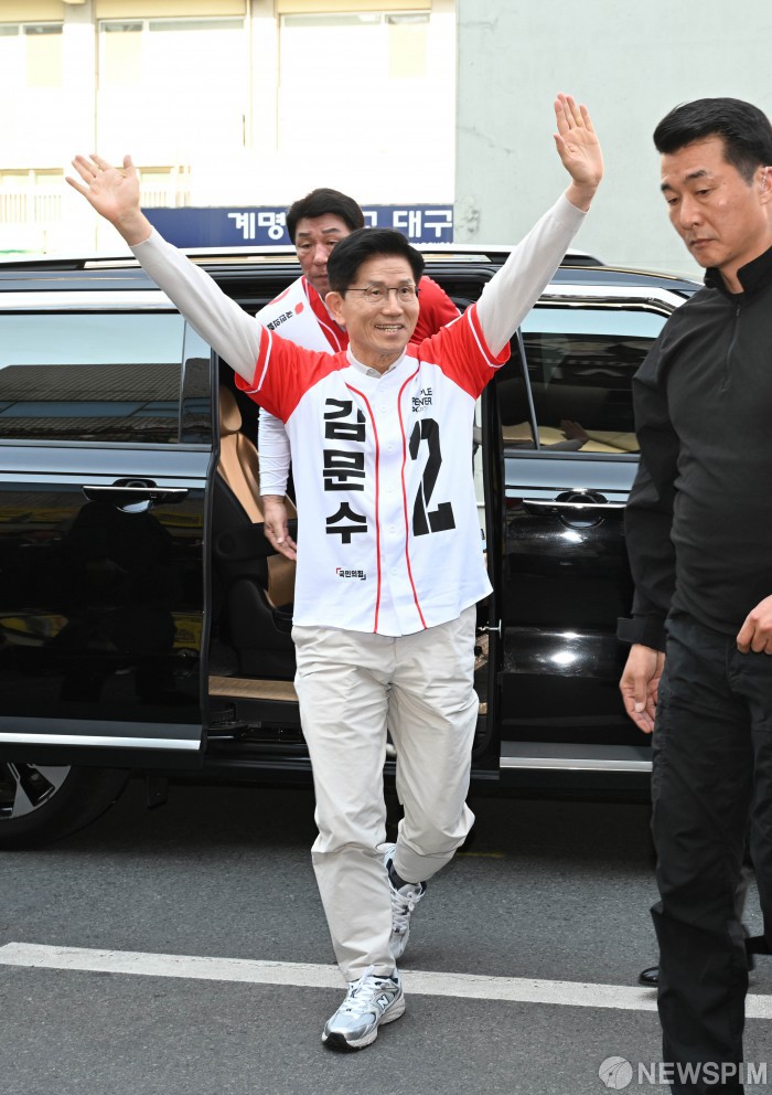 손 들어 인사하는 김문수 국민의힘 대선후보
