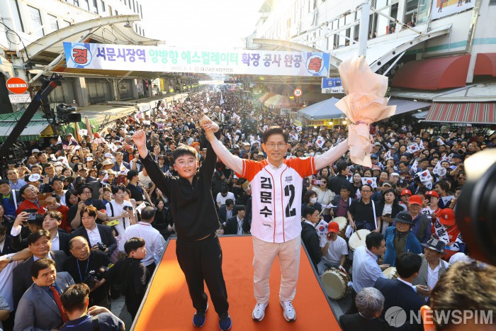 [대구=뉴스핌] 최지환 기자 = 김문수 국민의힘 대선후보가 12일 오후 대구 서문시장을 방문해 시민들에게 인사하고 있다. 2025.05.12 choipix16@newspim.com