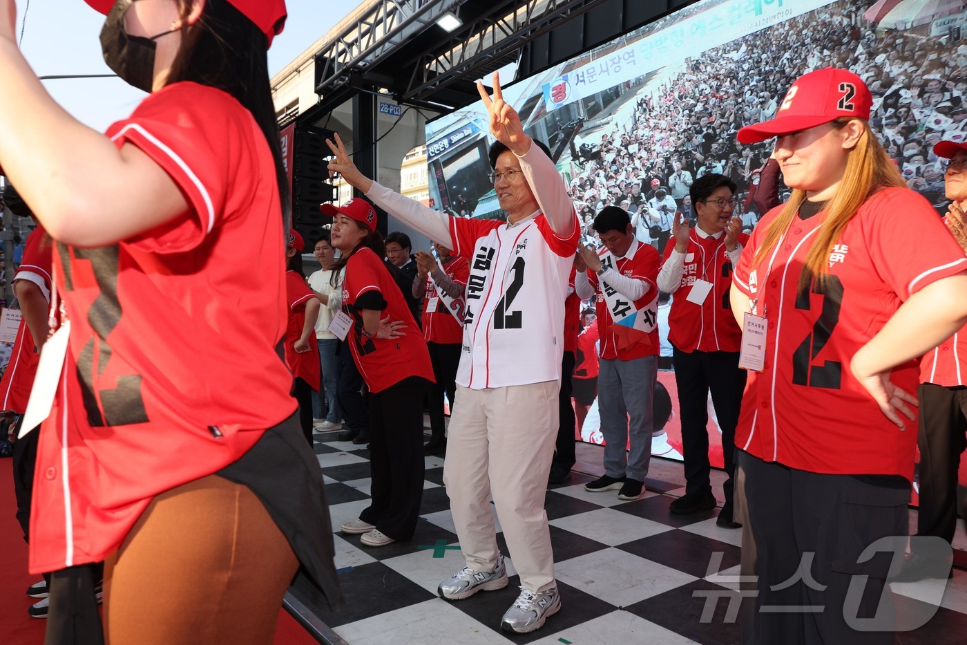 춤추며 지지 호소하는 김문수