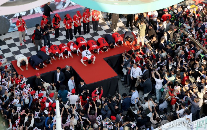 [대구=뉴스핌] 최지환 기자 = 김문수 국민의힘 대선후보가 12일 오후 대구 중구 서문시장에서 열린 유세에서 시민들에게 지지를 호소하고 있다. 2025.05.12 choipix16@newspim.com