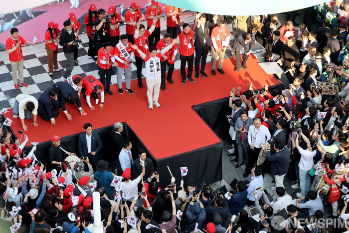 "감사합니다" 인사하는 김문수 국민의힘 대선 후보