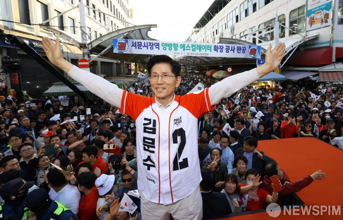 [대구=뉴스핌] 최지환 기자 = 김문수 국민의힘 대선후보가 12일 오후 대구 중구 서문시장 유세현장에서 시민들과 인사를 나누고 있다. 2025.05.12 choipix16@newspim.com