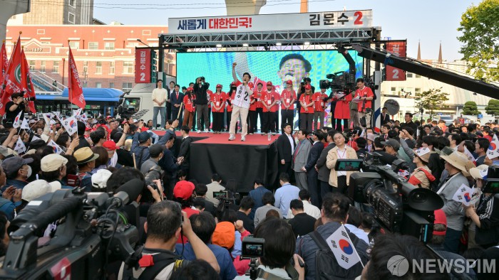 [대구=뉴스핌] 최지환 기자 = 김문수 국민의힘 대통령 후보가 제21대 대통령 선거 공식 선거운동 첫 날인 12일 대구 중구 서문시장을 찾아 지지를 호소하고 있다. 2025.05.12 choipix16@newspim.com