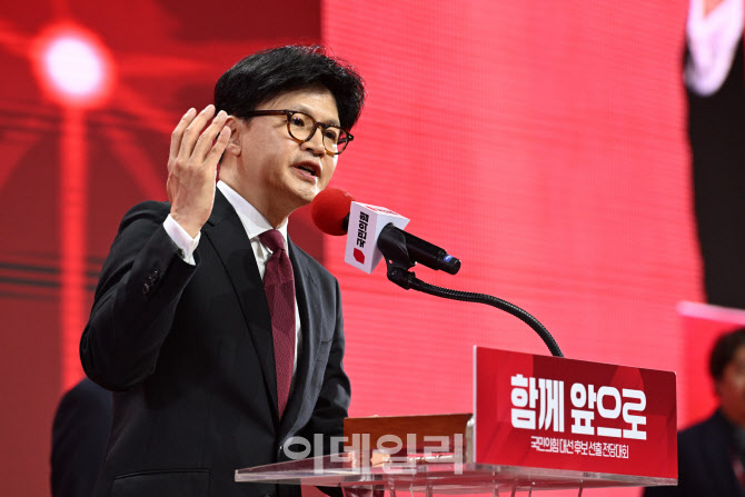 [이데일리 이영훈 기자] 한동훈 국민의힘 대선 경선 후보가 3일 경기 고양시 킨텍스에서 열린 국민의힘 최종 대선 후보 선출을 위한 전당대회에서 승복연설을 하고 있다. |