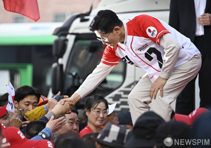 [대구=뉴스핌] 최지환 기자 = 김문수 국민의힘 대선후보가 12일 오후 대구 중구 서문시장에서 열린 유세에서 시민들과 악수를 하고 있다. 2025.05.12 choipix16@newspim.com