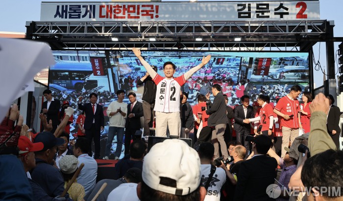 [대구=뉴스핌] 최지환 기자 = 김문수 국민의힘 대선 후보가 12일 오후 대구 서문시장 유세에서 시민들에게 인사하고 있다. 2025.05.12 choipix16@newspim.com