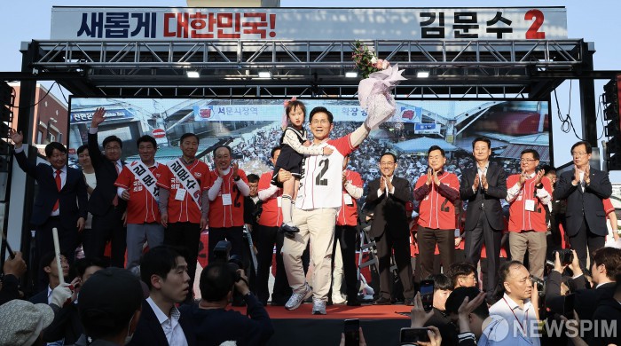 [대구=뉴스핌] 최지환 기자 = 김문수 국민의힘 대선 후보가 12일 오후 대구 서문시장 유세에서 시민들에게 인사하고 있다. 2025.05.12 choipix16@newspim.com