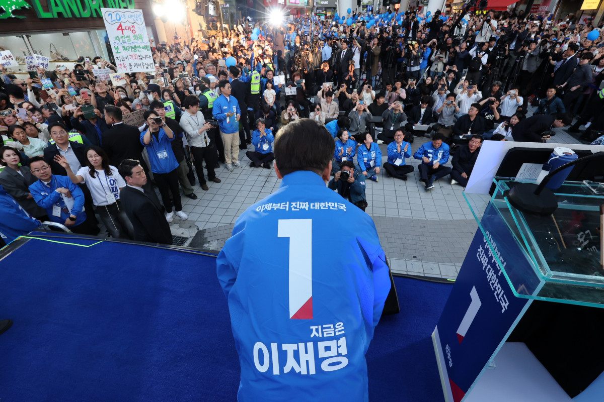 그는 ‘쫄지 말라’는 한 시민의 외침에 "이재명은 절대로 쫄지 않는다. 걱정하지 마시라”며 “저에게 힘내라 하지 마시고 여러분이 힘 내시기 바란다"고 지지자들을 향해 말했다. 그러면서 "이재명을 선택하는 것이 아니라 여러분의 미래를, 여러분 자녀들의 인생을 선택하시기 바란다"고 말했다.